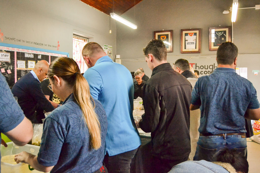 👩🍳 Louise Lategan van Nedbank Commercial, haar Chosen Ones-span en ander vrywilligers het al douvoordag begin hotdogs maak – ek het ook een geeët en dit was super lekker! Hulle het ook al die hotdogs gesponsor – Groot dankie!!! Dankie vir julle skryfbehoeftes, sanitere ware en Hein wat ook gehelp het met alles Vervoer en aanry. Julle is ‘n gedugte span.